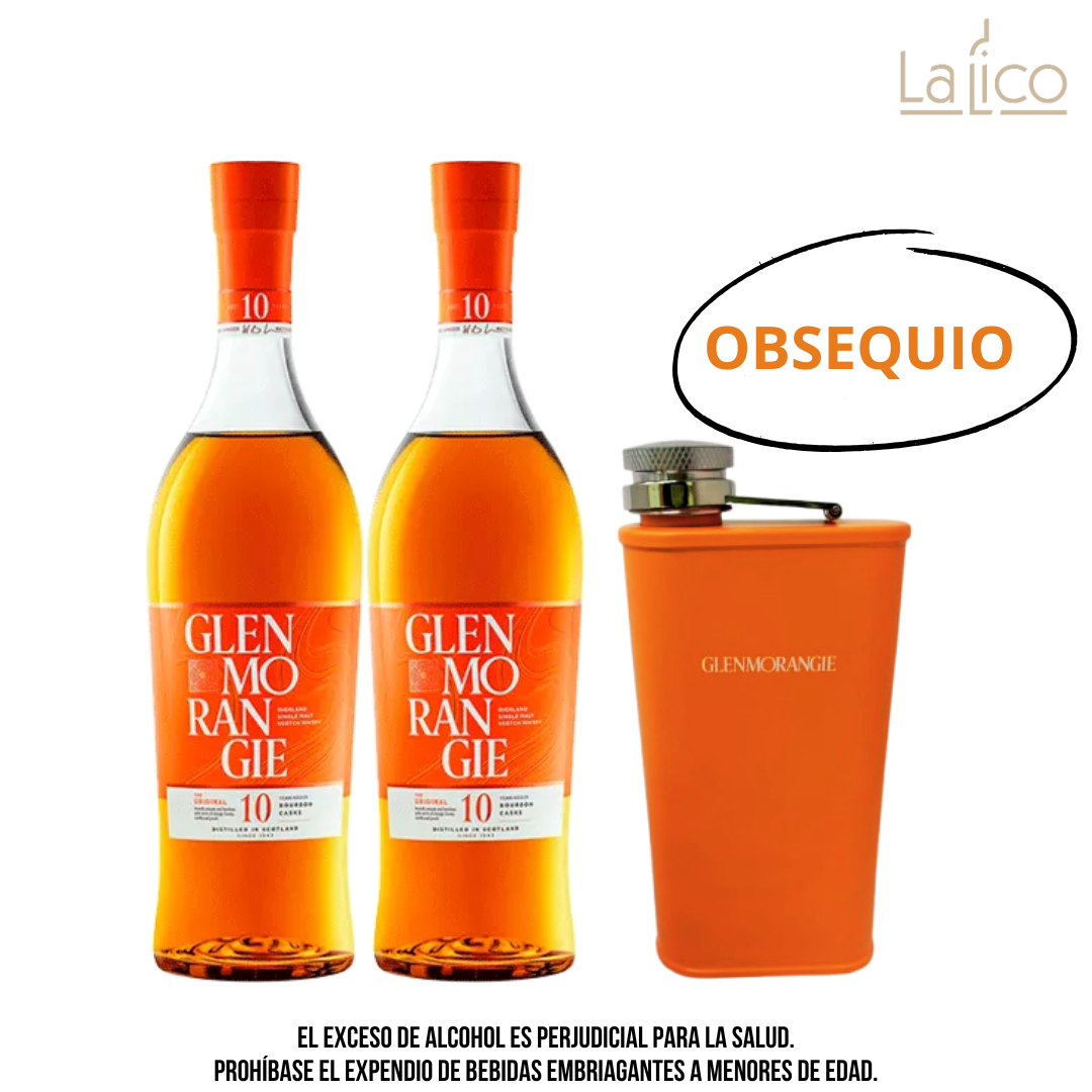 Por la compra de 2 botellas de Glenmorangie 10 años, recibe de regalo una elegante licorera. Un obsequio perfecto para destacar el sabor y la experiencia de uno de los single malts más reconocidos del mundo. ¡Aprovecha esta promoción exclusiva!