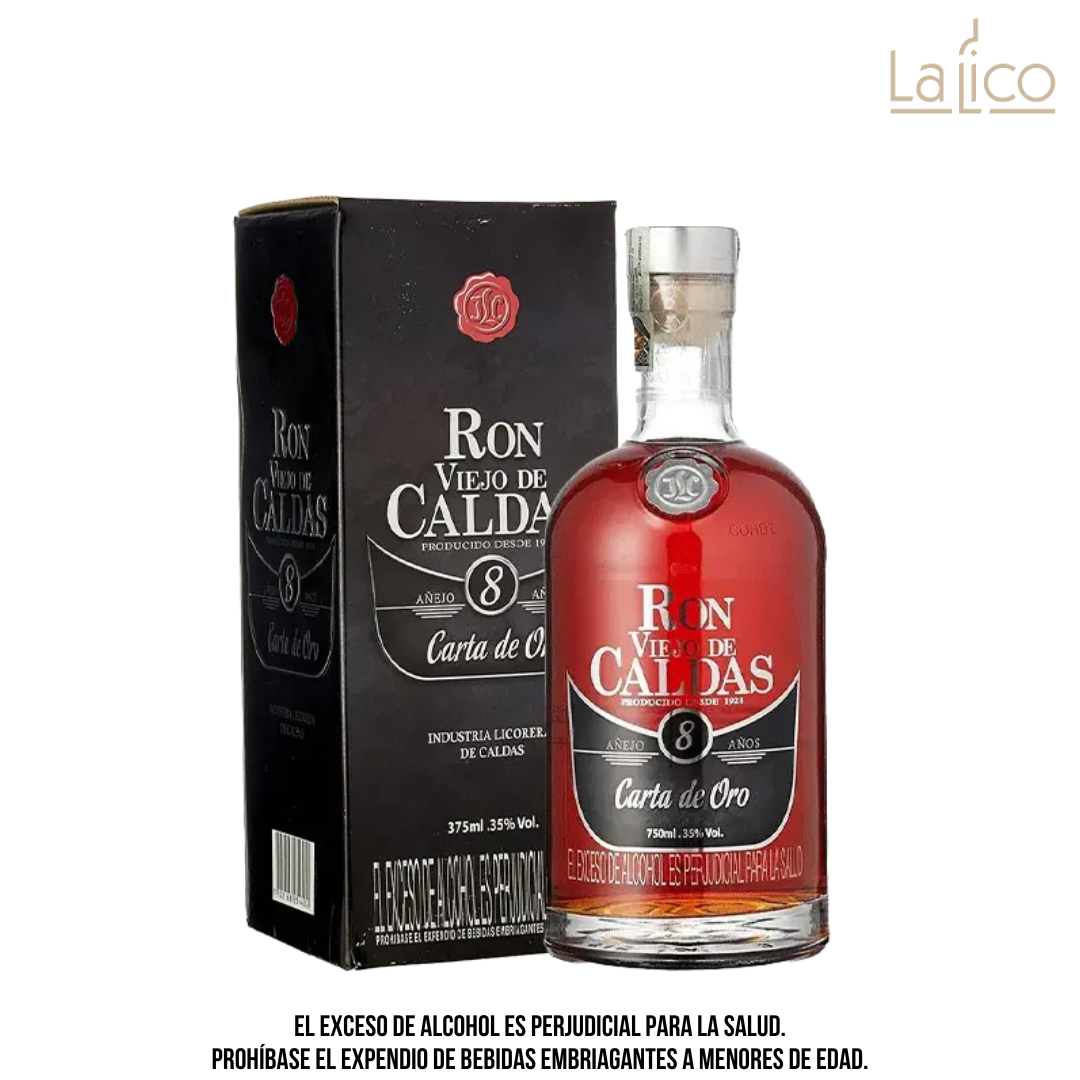 Ron Viejo de Caldas 8 años, nacido de la caña de azúcar y el espíritu caribeño, de color ámbar profundo y maduro, en su aroma notas de melocotón y miel suavemente integrados, en paladar redondo, suave y armonioso con aromas integrados delicadamente de almendras, caramelo, vainilla y madera.